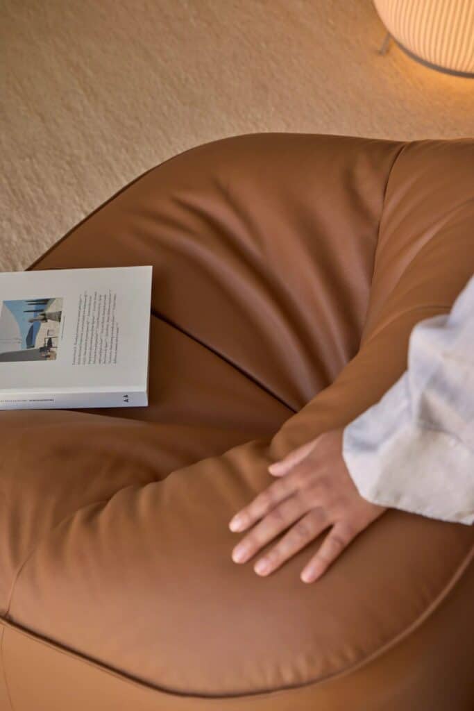 A single, expressive wrinkle, called an “invisible knot” in the center, breaks the perfection of the cube. It’s a subtle inward pull creates a natural, organic detail: a distinctive wrinkle that speaks to individuality and gives warm, welcoming vibes. These two contrasts create a lounge that feels alive, as if the fabric is gently exhaling within its structured frame.